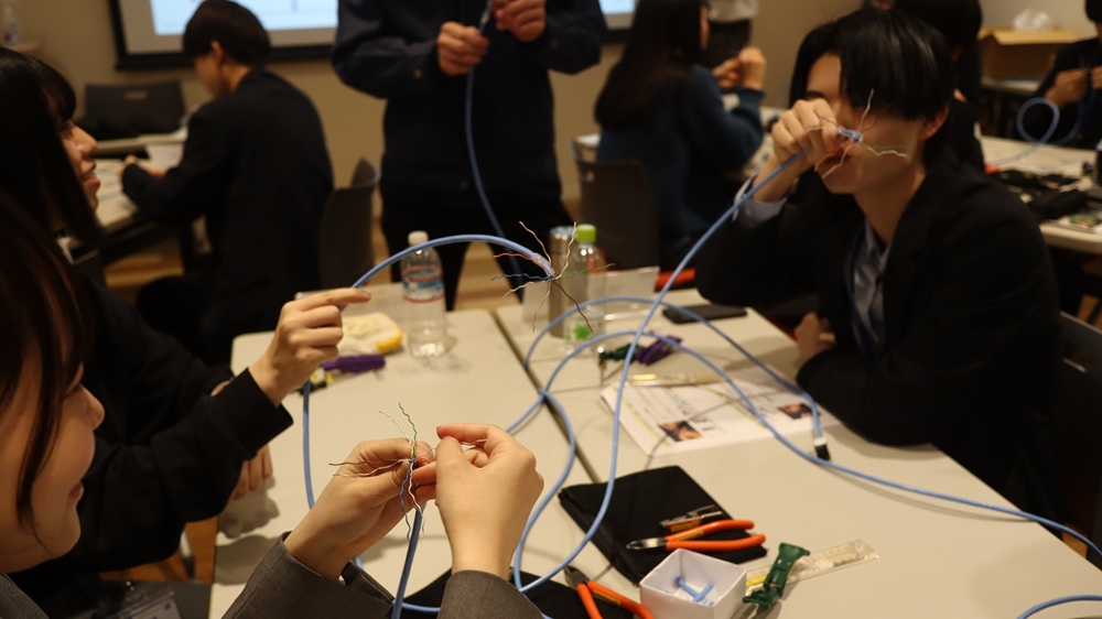 さらに、ネットチャート主催の電気通信事業者向け教育プログラム「ネットクルーズ」でのLANケーブル作成体験や、自社のキッティングセンター見学も実施。